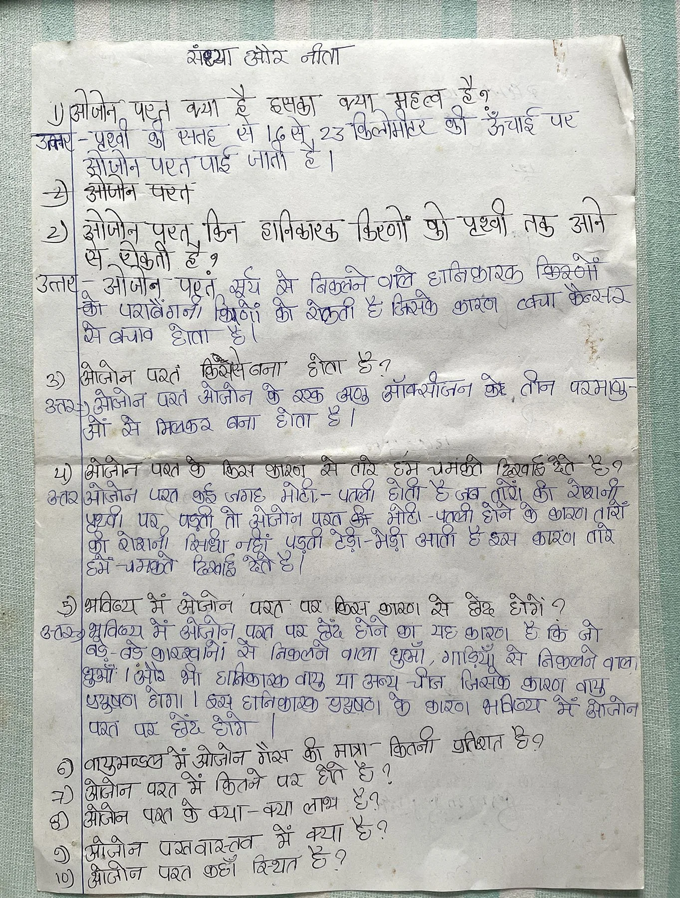 How many layers are there in the Ozone layer? (There seems to be a confusion, but I have retained the original in the translation)